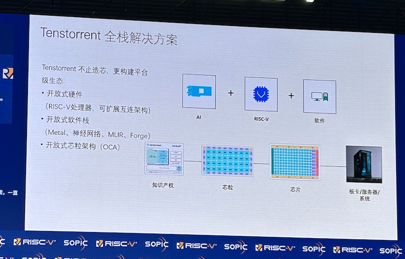 練維漢首先提到Tenstorrent首席執(zhí)行官對開源的獨特理解,認為分享是進步的動力,創(chuàng)新源于開放。Tenstorrent將所有技術(shù)開源,不畏競爭,堅信通過努力和協(xié)作,公司能夠成為行業(yè)領(lǐng)導(dǎo)者。他的演講主題“融算于開、慧啟未來”濃縮了這一理念:“融算”代表AI與CPU等技術(shù)的融合統(tǒng)一,“于開”呼應(yīng)開源與開放的精神,“慧啟未來”則指向通過智慧與智能的結(jié)合,追求超越算力的更高目標(biāo)。Tenstorrent相信,未來的智能計算屬于那些保持開放心態(tài)、勇于融合創(chuàng)新的人。