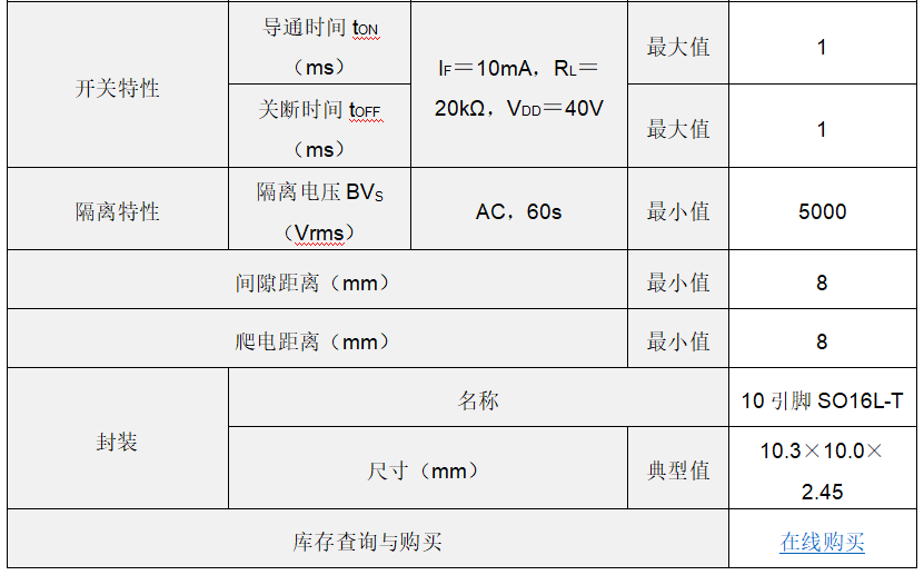 該光繼電器的10引腳SO16L-T封裝采用相對漏電起痕指數(shù)(CTI)[2]為600以上的樹脂,屬于IEC 60664-1[4]國際標(biāo)準(zhǔn)中I[3]類材料,而且其引腳配置可確保光接收器側(cè)的爬電距離為7.5mm以上[5](圖1)。這些特性均符合IEC 60664-1標(biāo)準(zhǔn),可提供1500V的工作電壓。