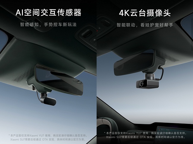 6月26日,小米首款豪華高性能SUV —— 小米YU7發(fā)布,其中車內(nèi)后視鏡配備的「4K云臺(tái)攝像頭」和「AI空間交互傳感器」,將高清視覺(jué)、語(yǔ)音控制、手勢(shì)控制全面升級(jí)并深度融入車內(nèi)場(chǎng)景,為駕駛者帶來(lái)了更為便捷智能的交互體驗(yàn)。