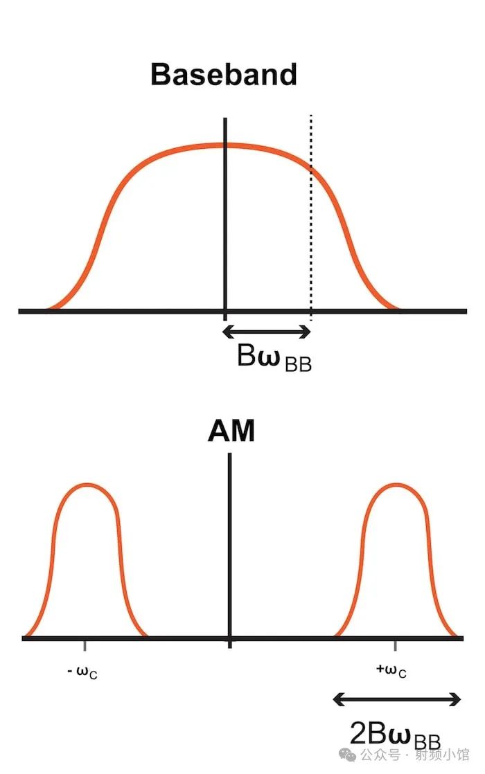 由于基帶頻譜關于y軸對稱,這種頻率平移會導致帶寬增加2倍。