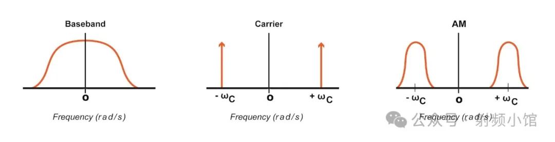 在頻域中,幅度調(diào)制對應于將基帶頻譜平移到以載波頻率為中心的頻帶。