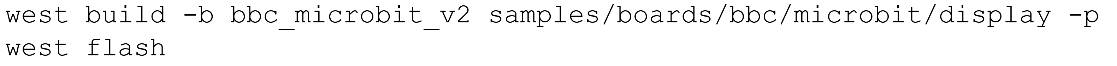 Figure 13. Commands to compile and flash the sample onto the micro:bit V2 board