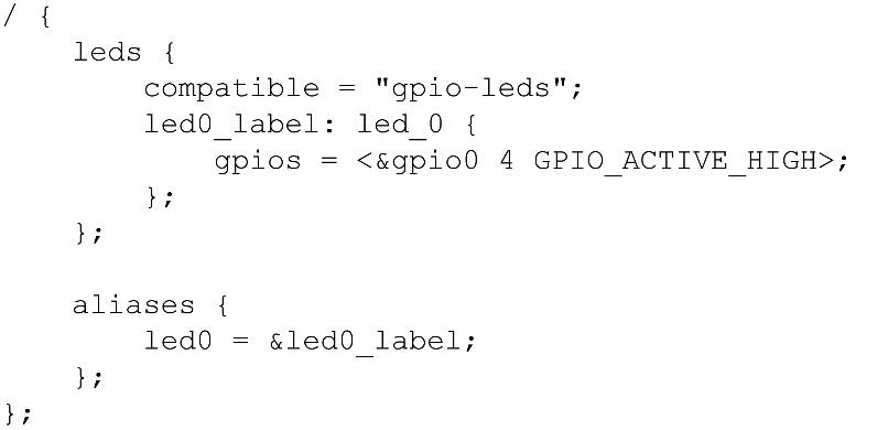 Figure 4. A minimum device tree file (source: zephyrproject.org)