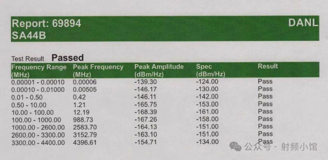 最令我驚訝的是,SA44B的校準(zhǔn)證書顯示其在60Hz處的本底噪聲電平竟達(dá)到-139.3dBm/Hz!