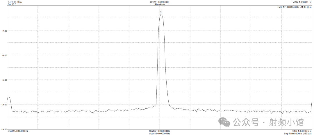 0Ω輸入條件下,1kHz頻點(diǎn)(分辨率帶寬1Hz)的噪聲功率為 -134.3dBm。若疊加25Ω熱噪聲(-136.81dBm),理論結(jié)果為 -132.4dBm,與實(shí)測(cè)的50Ω輸入條件噪聲功率 -132.8dBm 非常接近!有趣的是,使用另一款SMA 50Ω端接器時(shí),我實(shí)測(cè)到了 -133dBm…