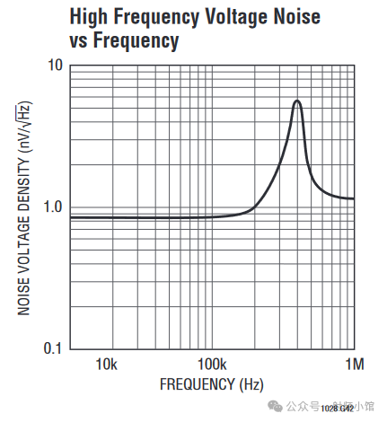 有人可能會(huì)問:為何上述頻譜中400kHz處噪聲會(huì)上升?答案藏在LT1028數(shù)據(jù)手冊(cè)中: