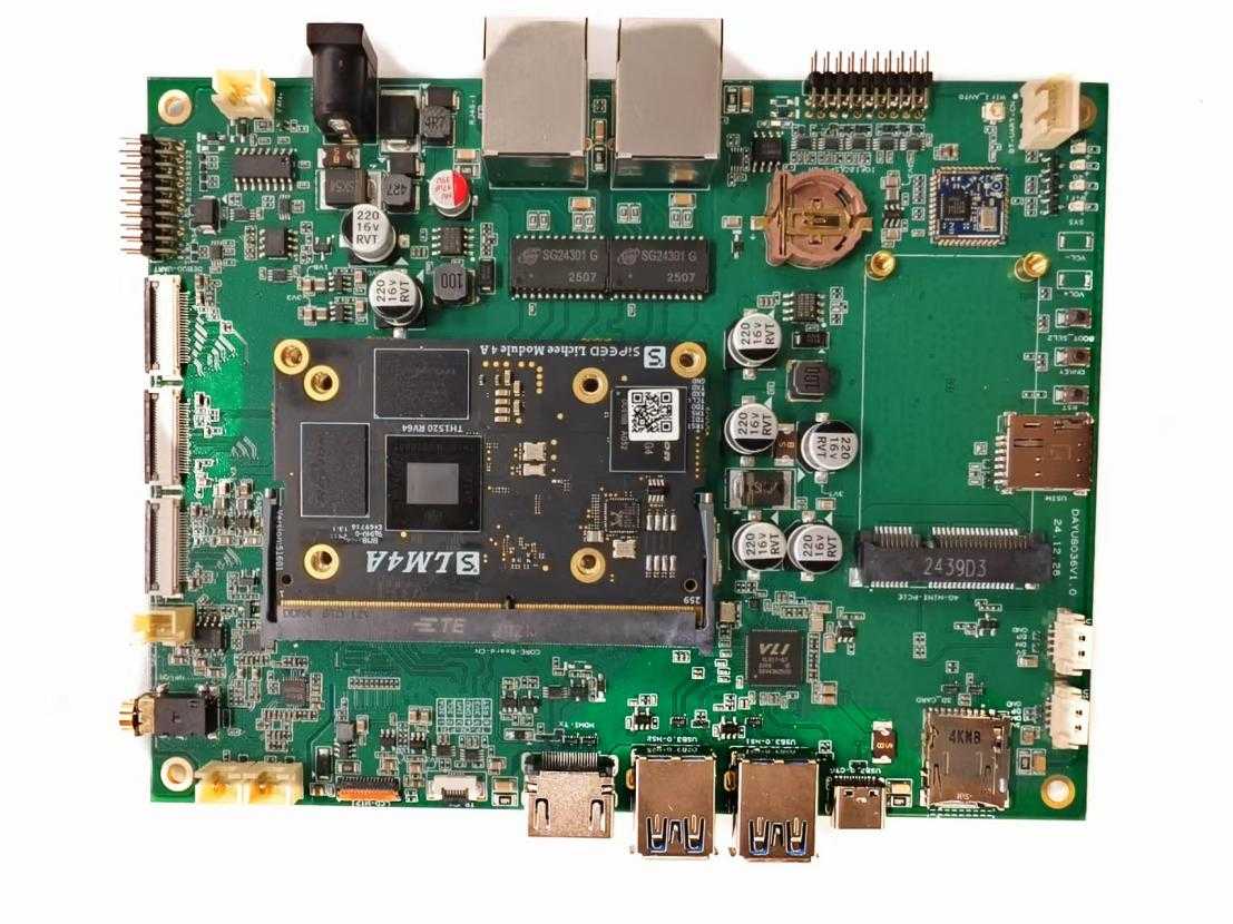 潤開鴻鴻銳開發(fā)板SCDAYU800A具備平頭哥高性能RISC-V架構(gòu)曳影TH1520芯片,集成4核高性能RISC-V處理器玄鐵C910架構(gòu)。潤開鴻鴻銳開發(fā)板SCDAYU800A的外觀如圖1所示。