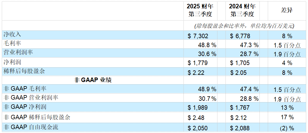 ?GAAP每股盈余2.22美元,創(chuàng)紀(jì)錄的非GAAP每股盈余2.48美元,同比分別增長8%和17%