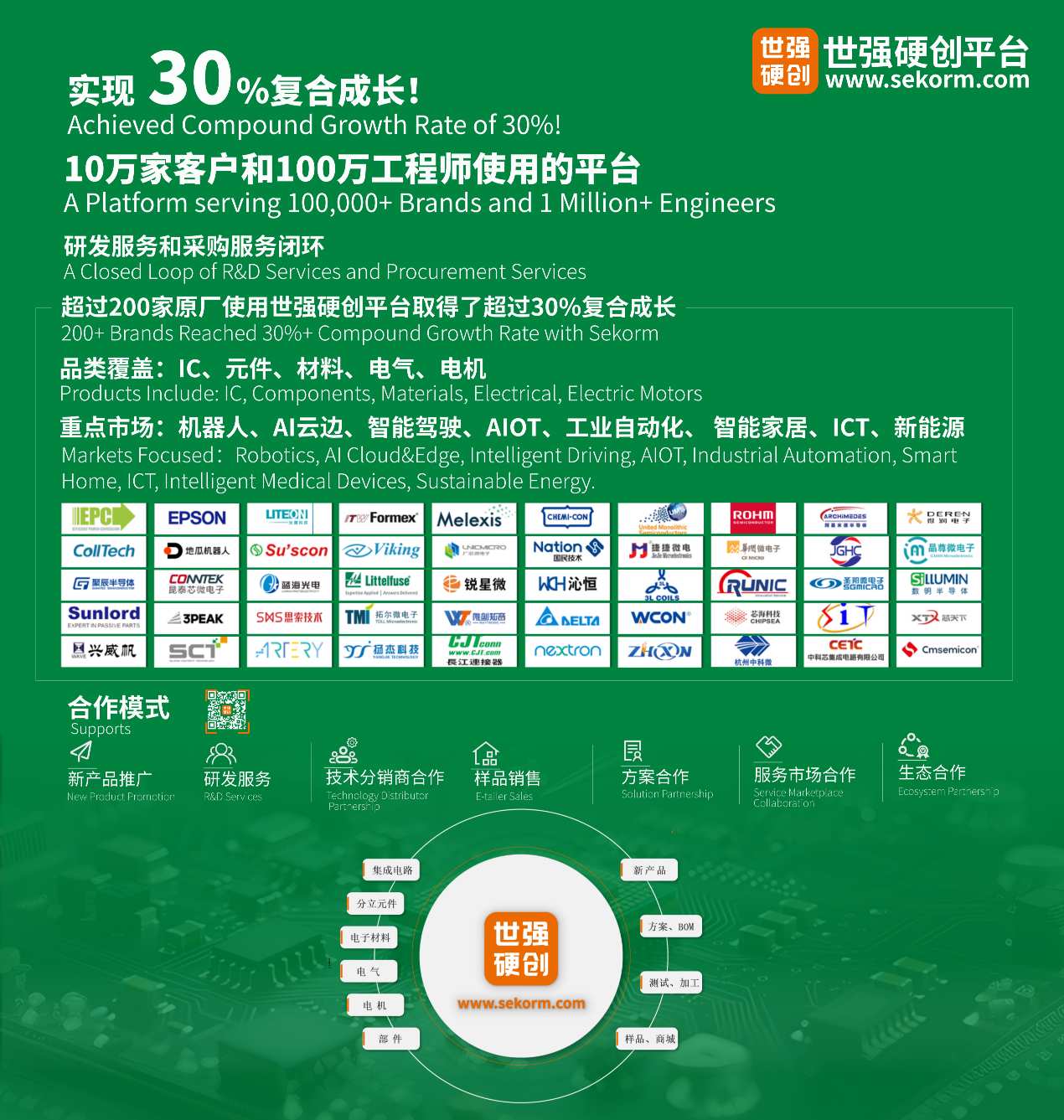世強硬創(chuàng)是全球領先的硬件創(chuàng)新研發(fā)及供應服務平臺,獲1000多家知名原廠授權代理,鏈接100萬工程師,為ICT、工業(yè)自動化、汽車電子、消費電子、物聯(lián)網(wǎng)等行業(yè)提供IC、元件、電氣、電機、材料、儀器等從方案設計、選型到采購的一站式服務,是電子行業(yè)的首選研發(fā)與采購平臺