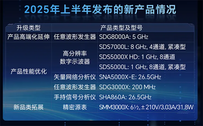 產(chǎn)品創(chuàng)新方面,2025上半年鼎陽共發(fā)布8款新產(chǎn)品,包括任意波形發(fā)生器SDG8000A、SDG3000X;高分辨率數(shù)字示波器SDS7000L、SDS5000X HD、SDS5000L;矢量網(wǎng)絡(luò)分析儀SNA5000X-E;手持信號分析儀SHA860A;精密源表SMM3000X,這些新品的發(fā)布不僅完善了公司產(chǎn)品矩陣,更進一步強化了在高端測試測量儀器領(lǐng)域的技術(shù)優(yōu)勢。