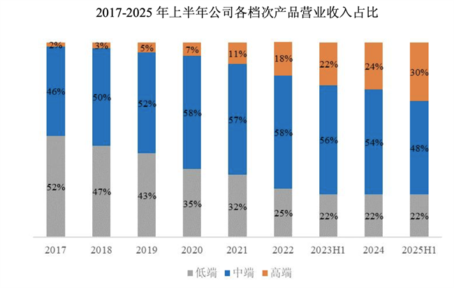 此外,本期內(nèi)鼎陽科技高端產(chǎn)品營業(yè)收入占比提升至30%,高端產(chǎn)品營業(yè)收入同比增長71.92%,其中銷售單價5萬元以上的產(chǎn)品銷售額同比增長69.61%,銷售額單價3萬元以上的產(chǎn)品銷售額同比增長51.37%,標志著公司在高端市場的技術(shù)壁壘和品牌認可度持續(xù)強化。