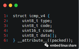 接下來,我們使用結(jié)構(gòu)體來定義ICMP 報(bào)文,該結(jié)構(gòu)體定義在level-ip的include/icmpv4.h文件中: