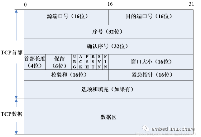 TCP協(xié)議有著自己的數(shù)據(jù)包格式,這里把TCP的數(shù)據(jù)包稱(chēng)為報(bào)文段(segment),TCP報(bào)文段封裝在IP數(shù)據(jù)報(bào)中發(fā)送,TCP報(bào)文段由TCP首部和TCP數(shù)據(jù)區(qū)組成,首部區(qū)域包含了連接建立與斷開(kāi)、數(shù)據(jù)確認(rèn)、窗口大小通告、數(shù)據(jù)發(fā)送相關(guān)的所有標(biāo)志和控制信息。如下圖: