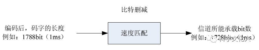 ?速率匹配對(duì)信道編碼后的比特流進(jìn)行選取,形成不同的編碼速率,以匹配最終實(shí)際應(yīng)用的物理資源,以碼塊為單位進(jìn)行速率匹配。速率匹配的作用是確保在傳輸信道復(fù)用后總的比特率與所分配的專用物理信道的總比特率是相同的。如果碼字的長(zhǎng)度超過(guò)信道的承載能力,則需要進(jìn)行速度匹配,刪除一些冗余,確保在TrCH后復(fù)用的總的比特率與所分配的專用物理信道的總比特率是相同的。在這個(gè)過(guò)程中,以信道編碼的每個(gè)碼塊為單位進(jìn)行速率匹配的操作。速率匹配示意圖如圖5所示。