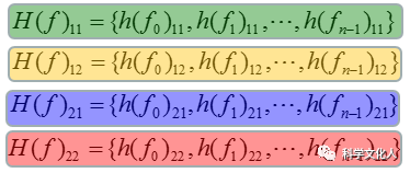 現(xiàn)在你有了一個H矩陣數(shù)組。該陣列由四個不同的組組成,每個組用不同的顏色突出顯示,如下所示。