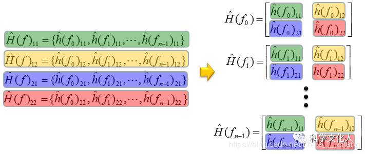 通過對所有四個陣列執(zhí)行相同的過程,您可以獲得“估計信道系數(shù)陣列”的四個陣列。從這四個陣列中,您可以按以下方式重建估計信道矩陣的陣列。