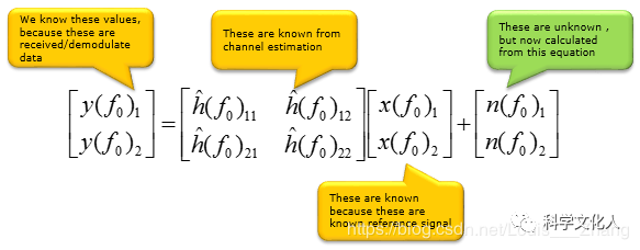 在此等式中,我們知道x1,x2(已知的發(fā)射信號)和y1,y2(檢測/接收的信號)。我們不知道的部分是H矩陣和噪聲(n1,n2)。