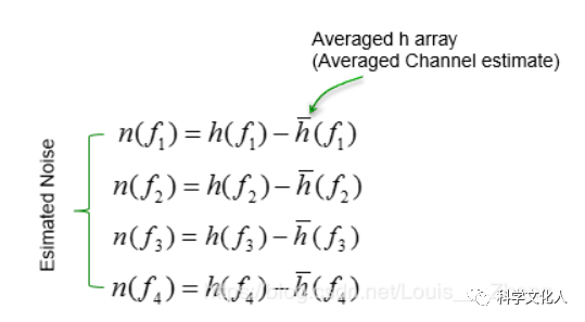 但是,我們需要的是噪聲的統(tǒng)計屬性,而不是確切的噪聲值。我們可以僅使用測得的信道系數(shù)和平均信道來估算噪聲,如下所示(實際上,準確的噪聲值沒有太大意義,因為噪聲值會不斷變化,使用那些特定的噪聲值沒有用)。在srsLTE中,作者使用了這種方法。