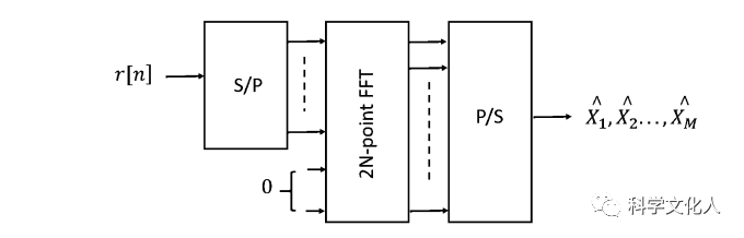 UF-OFDM波形的接收機(jī)處理如下圖所示。UF-OFDM波形不包含CP,因此,循環(huán)卷積性質(zhì)就不被保留。不像CP- OFDM解調(diào)器在FFT操作前丟棄符號(hào)的CP部分,UF-OFDM接收機(jī)在解調(diào)中使用包括GI部分在內(nèi)的完整符號(hào)。