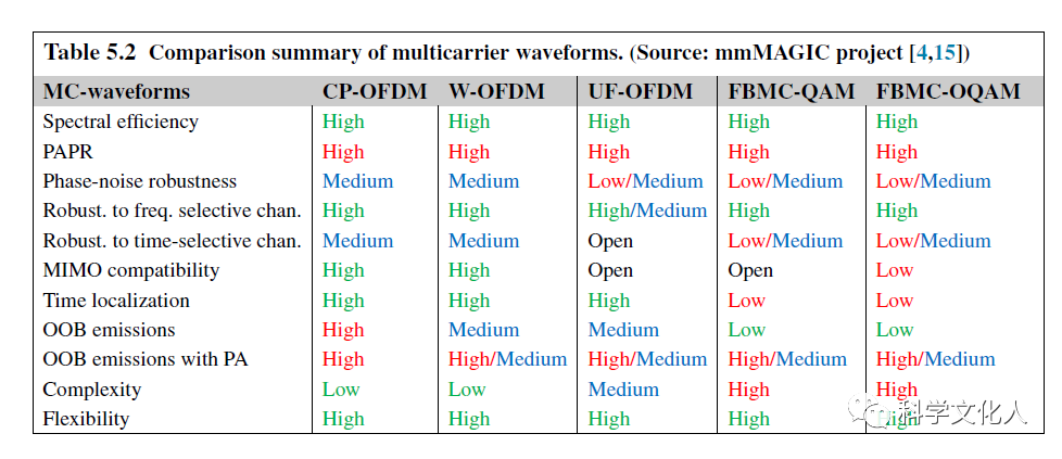總結(jié)了NR多載波波形,如CP-OFDM、W-OFDM、F-OFDM、UF-OFDM、FBMC-OQAM和FBMC-QAM