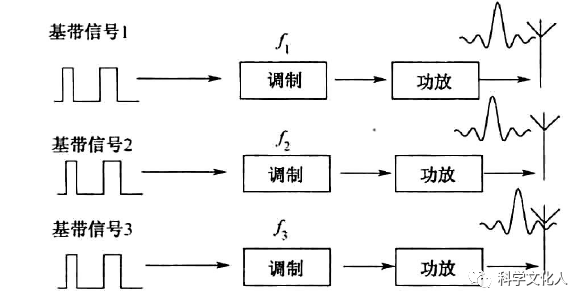 我們看到,三(多)路基帶信號(hào)各自調(diào)制到相應(yīng)的頻點(diǎn)上,然同經(jīng)過功放進(jìn)行功率放大,由饋線送達(dá)各自的天線,發(fā)射出去。