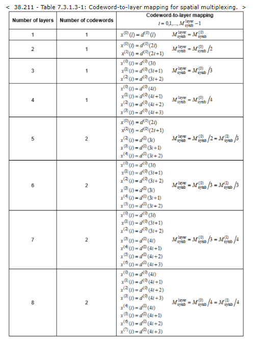 層映射過程完成后,每個層被映射到天線端口。當(dāng)CSI沒有應(yīng)用時,數(shù)據(jù)按下列方式映射到物理天線端口。