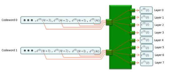 當(dāng)CSI使用時,經(jīng)過層映射的數(shù)據(jù)被映射到CSI天線,如下圖所示。
