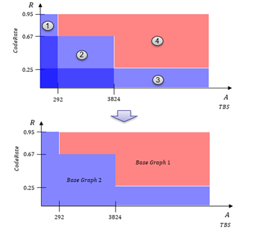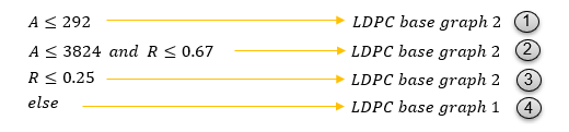 在NR 中,業(yè)務(wù)信道采用了LDPC編碼方式。根據(jù)A的大小和碼率進行選擇,具體如下圖。