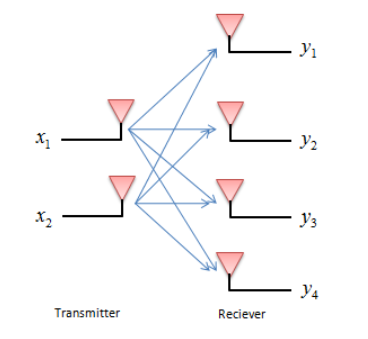 讓我們從最簡單和幾乎理想的情況開始,Tx天線的數(shù)量與Rx天線的數(shù)量相同,并且在信道中沒有噪聲。更具體地說,我們假設是2 × 2 MIMO的情況。這意味著兩個Tx天線和兩個Rx天線。