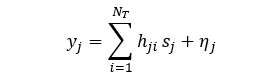 假設(shè)hji是一復(fù)數(shù),代表第i根發(fā)射天線和第j根接收天線之間的信道增益。在某一時刻,如果符號{s1,s2,...,sNT}由NT根天線發(fā)射,那么,在第j根天線接收到的信號可表示為: