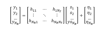 于是,對于i=1,2,...,NT根發(fā)射天線,j=1,2,...,NR根接收天線,上式可用矩陣表示為: