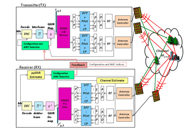 MIMO系統(tǒng)的主要優(yōu)點是通過分集獲得更高的可靠性和通過空間復(fù)用獲得更高的數(shù)據(jù)速率。這兩個概念在MIMO系統(tǒng)中同時使用。