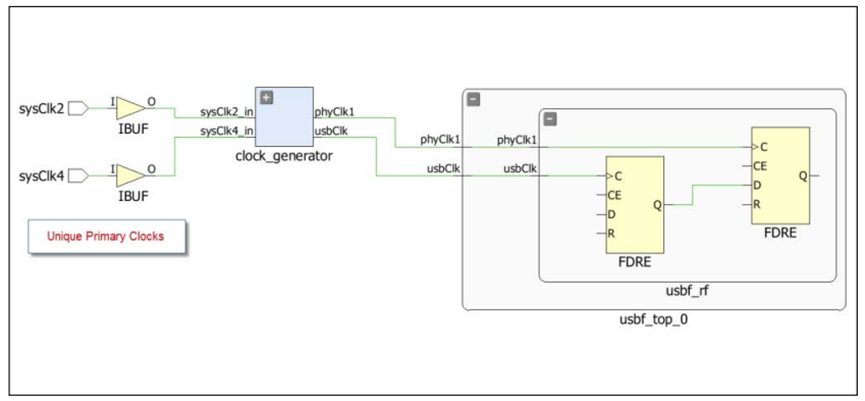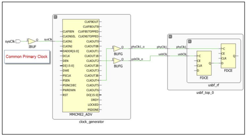 所謂安全的 CDC 路徑是指那些源時(shí)鐘和目標(biāo)時(shí)鐘擁有相同的來源,在 FPGA 內(nèi)部共享部分時(shí)鐘網(wǎng)絡(luò)的時(shí)序路徑。這里的安全指的是時(shí)鐘之間的關(guān)系對 Vivado®來說是全透明可分析的。