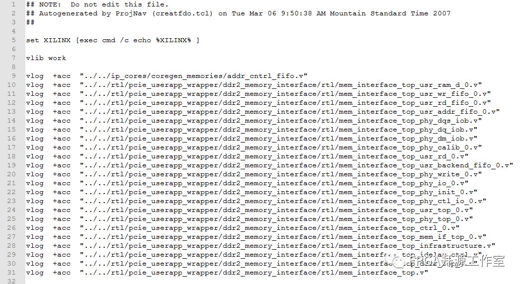 圖4 是tb.fdo文件里邊是我們重點(diǎn)學(xué)習(xí)的腳本語句,如何增加verilog文件,大家一看便知。