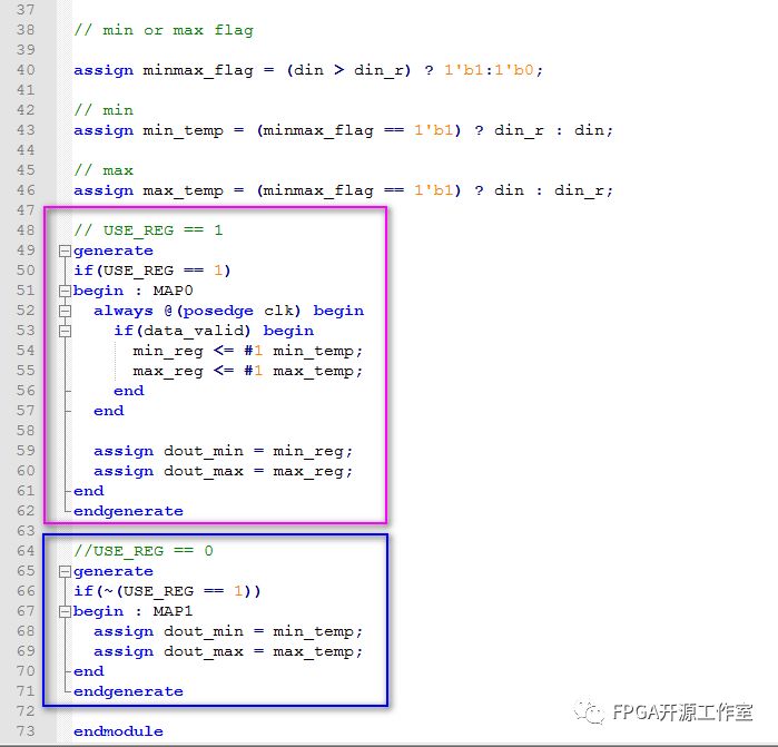 當(dāng) USE_REG == 1 的時候,fpga map的紅色框電路,當(dāng) USE_REG == 0時,FPGA map的藍(lán)色框電路。
