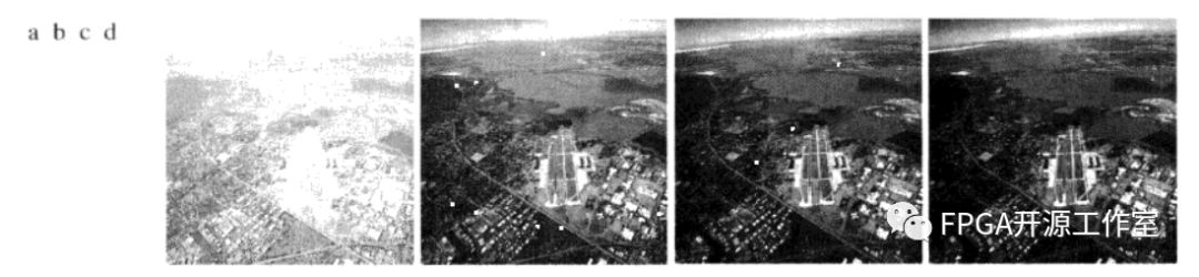 如圖2所示,a航拍原圖b~d令c=1且分別等于3.0,4.0和5.0時(shí)應(yīng)用式(1)給出的變換的結(jié)果(此例的原圖像由NASA提供)。