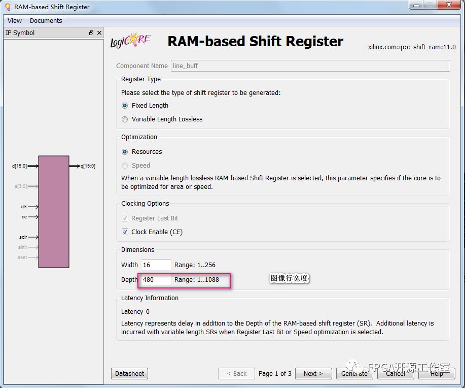 如圖1所示,我們要設計n行同時輸出,就串聯(lián)n行。Line_buffer的大小設置由圖像顯示行的大?。▓D像寬度)決定。例如480*272 (480)。