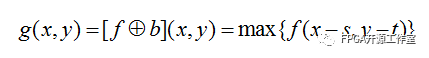 當(dāng)b的原點(diǎn)位于(x,y)處時(shí),用一個(gè)平坦的結(jié)構(gòu)元b在(x,y)處對圖像f的膨脹,定義為圖像f中與b重合區(qū)域的最大值,即: