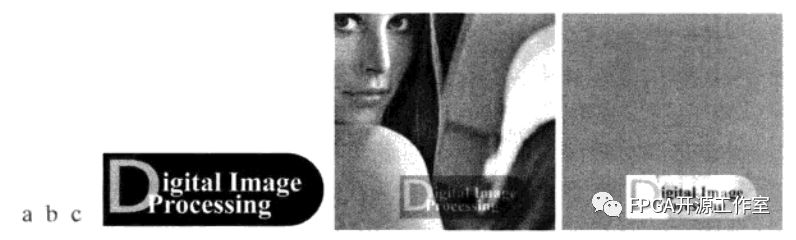 如公式1所示,未加水印的圖像表示為f水印表示為w,常數(shù)a控制水印和襯底圖像的相對(duì)可見性。如果a為1,則水印是不透明的,并且襯底圖像完全是暗的;隨著a接近0,會(huì)逐漸看到更多的襯底圖像和更少的水印。通常a在0和1之間。如圖2所示,a為數(shù)字水印,b圖像中a=0.3,c圖像中是已加水印的b和原圖f的差值。