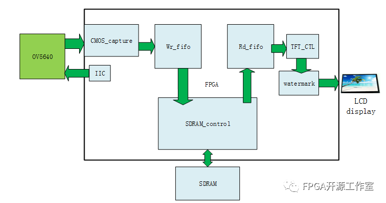 圖3 視頻圖像的數(shù)字圖像水印的FPGA實(shí)現(xiàn)流程圖