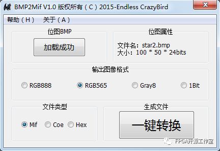 如圖5所示,我們使用BMP2MIF工具生成.mif文件。