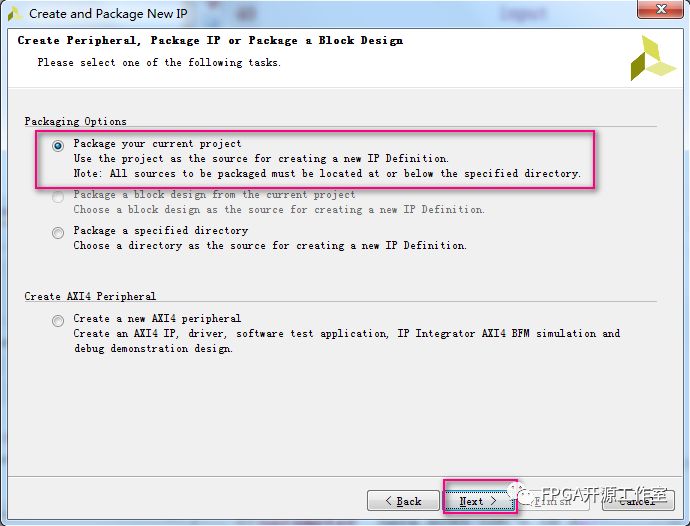 2) 點(diǎn)擊菜單欄->tools->Create and Package New IP ->Next