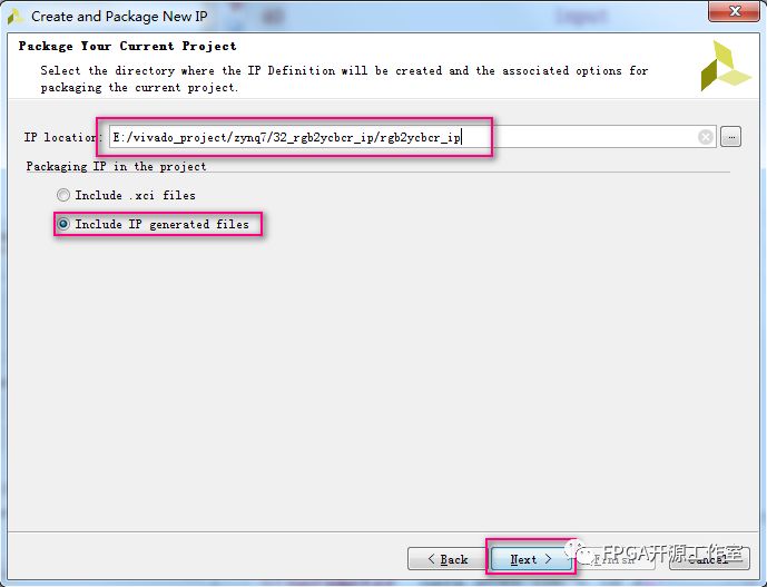 4)選擇IP Location 這里我們選著Include IP generated files->next->finished