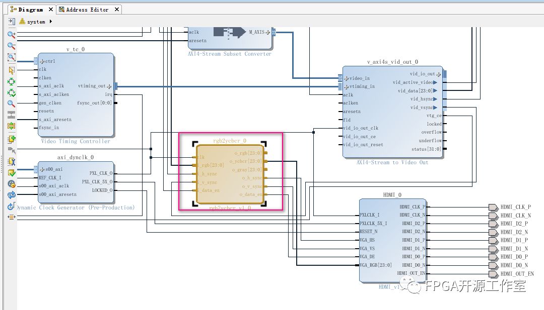 利用《Zynq-7000電子相冊的實(shí)現(xiàn)》的設(shè)計(jì)成果。我們在此平臺(tái)上驗(yàn)證rgb2ycbcr模塊。