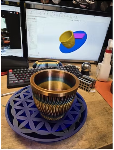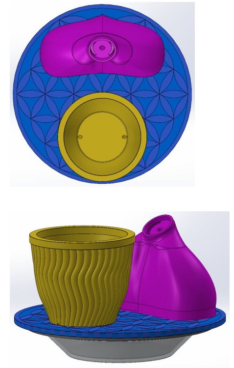 設計。我一直熱愛神圣幾何的藝術。植物被安置在一個非常有機形狀的花盆里,只是為了美觀。在我構(gòu)思整個項目之前,它是單獨存在的。那只壺陷進了生命之花的形象里。我在過去的許多藝術作品中探索了這個非常古老的形象。電子設備被安置在一個以人類為中心的抽象空間里。它的外觀故意像人類一樣。這個項目顛覆了人與植物的關系。植物可以伸出手來滿足自己的需求,而不是被迫等待。半身像坐在植物下面,等待著它帶電的內(nèi)臟,傳遞給它的人類仆人。