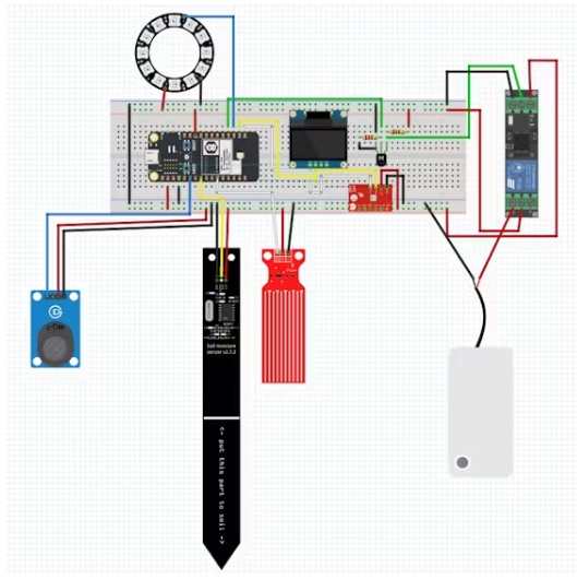隨著這些檢測系統(tǒng)的協(xié)同工作,系統(tǒng)會在短時間內(nèi)打開一個泵,這樣植物就可以喝飽了。在此過程中,它會設置一個綠燈,表明它已經(jīng)分配并且土壤應該是濕潤的。經(jīng)過一段時間和足夠的分配,土壤就會足夠濕潤,變成藍色的“呼吸”。