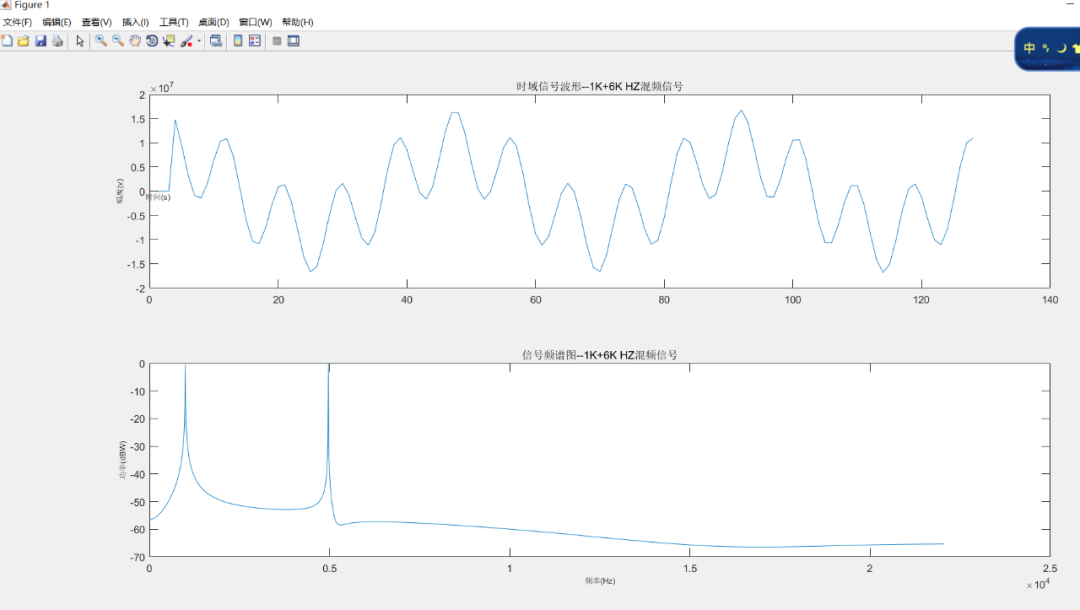 濾波前的1khz+6khz的混頻信號(hào)。