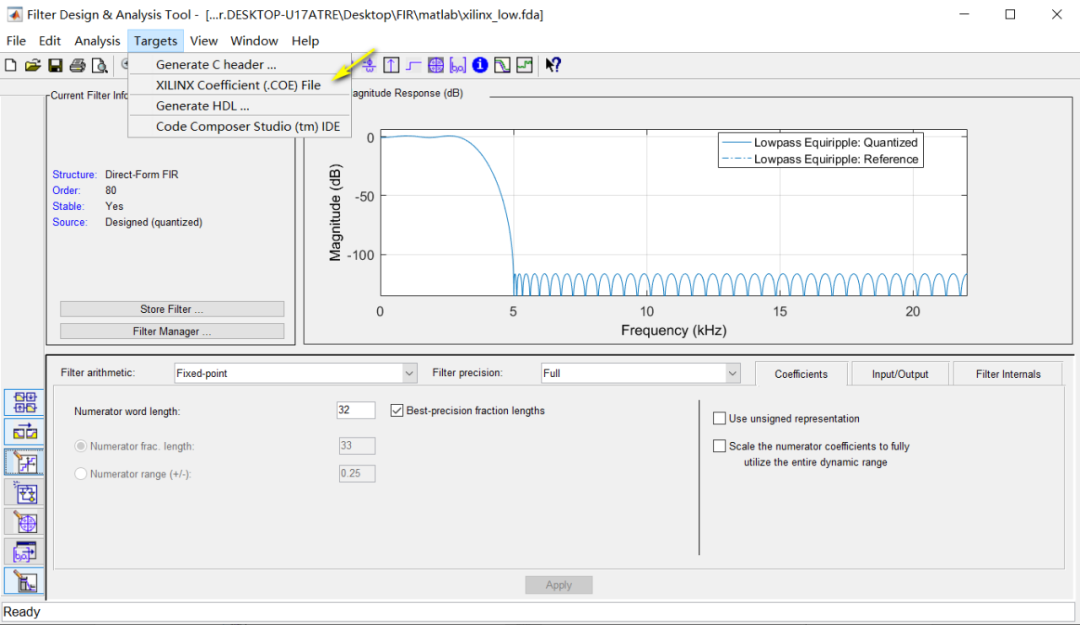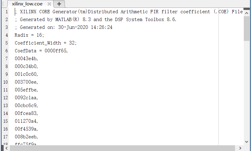 4)matlab導(dǎo)出 .coe