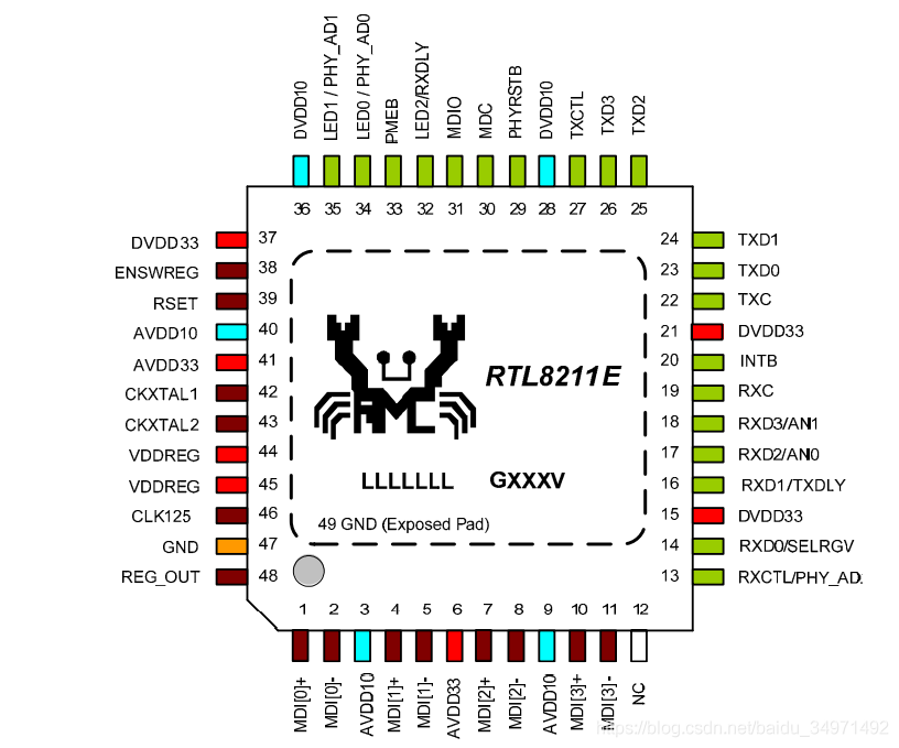 1.3 RTL8211E芯片管腳圖及部分管腳介紹