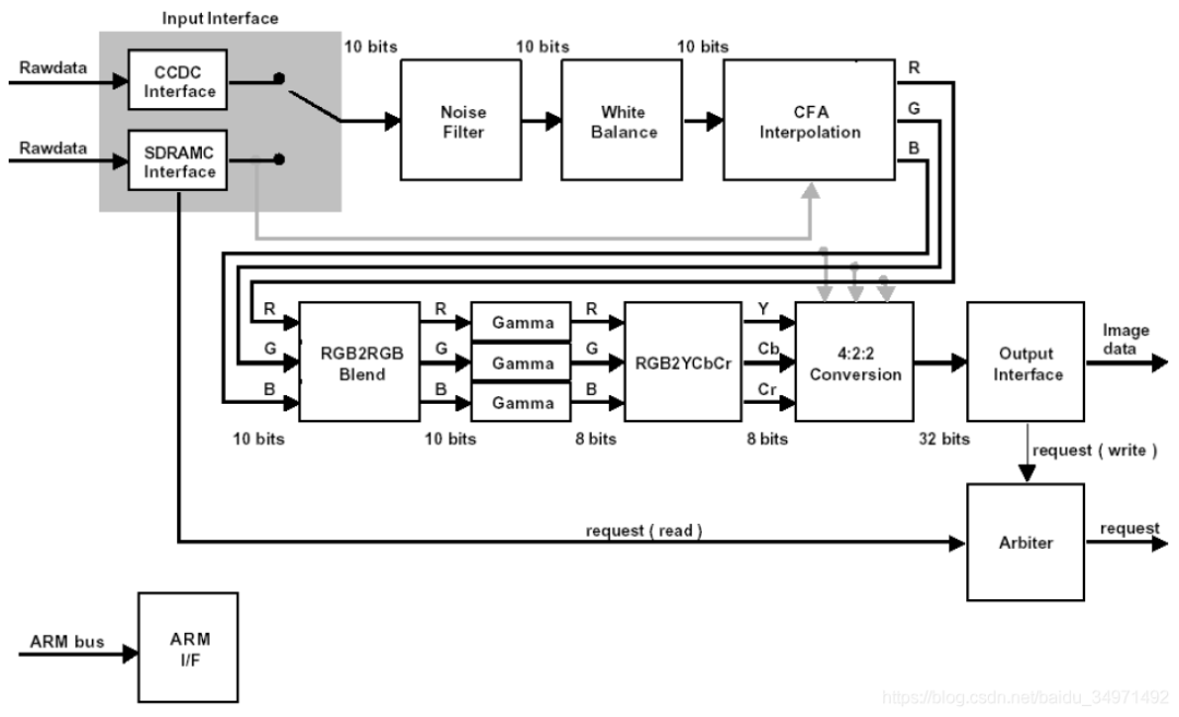 如下圖所示,ISP內(nèi)部包含 CPU、SUP IP、IF 等設(shè)備,事實上,可以認為 ISP 是一個 SOC(system of chip),可以運行各種算法程序,實時處理圖像信號。